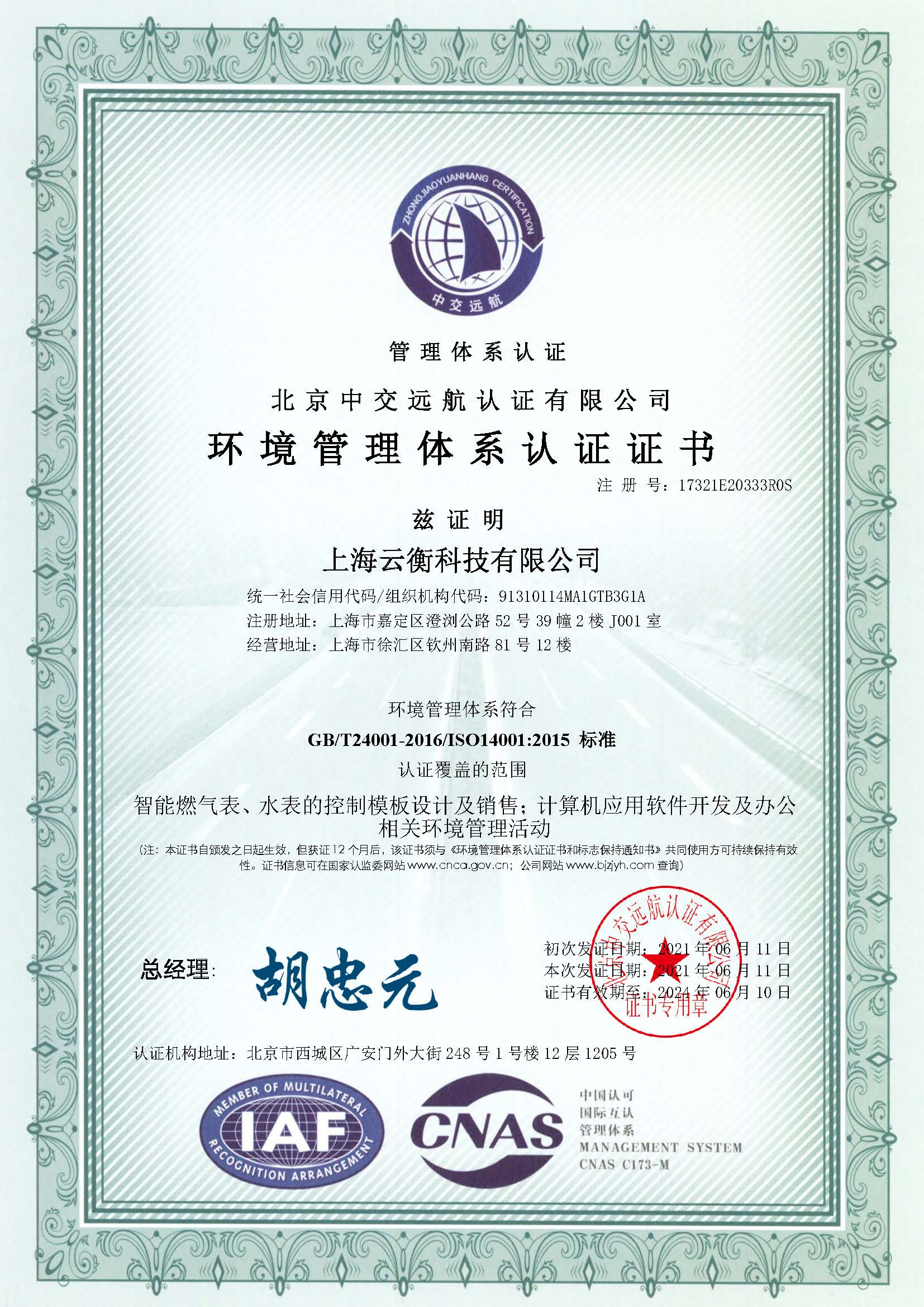 ISO14001證書